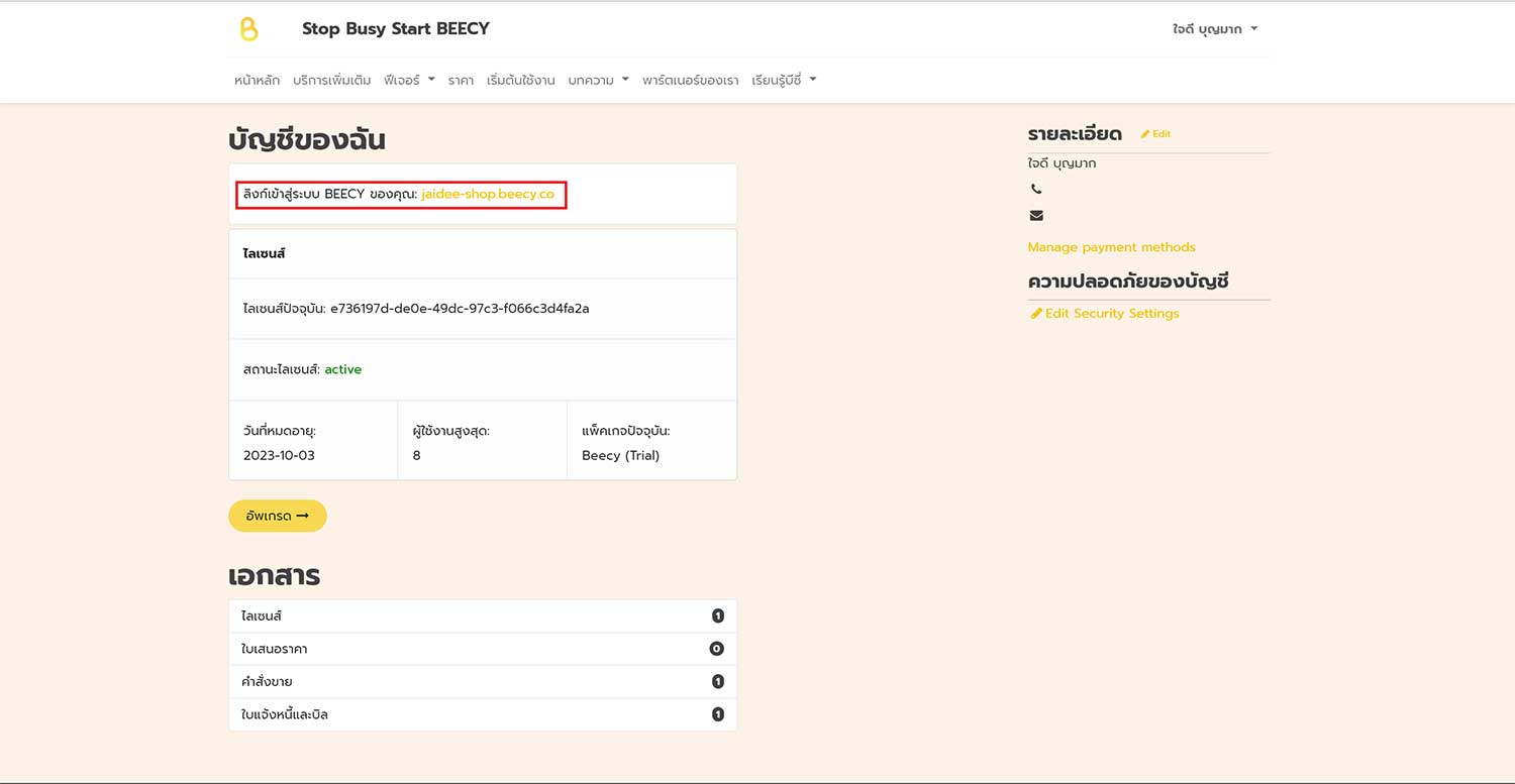 หากพบปัญหาในการใช้งานระบบ คุณสามารถติดต่อทีมงานของเรา ได้ที่ Line: @beecysupport หรือ โทร. 02-821-6656